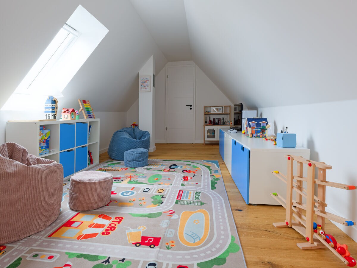 Besonders am Herzen liegt uns die Kinderfreundlichkeit. Im Kinderzimmer steht Ihnen sowohl ein Etagenbett 90x200cm sowie ein Einzelbett 90x200cm zur Verfügung. Damit den Kids auch bei schlechtem Wetter nicht langweilig wird, haben wir im Dachgeschoss ein Spielzimmer mit viel tollem Spielzeug (PS5, Playmobil, Lego Duplo, Lego Duplo Eisenbahn, Gesellschaftsspiele, Kugelbahn, Holzeisenbahn usw.) ausgestattet.