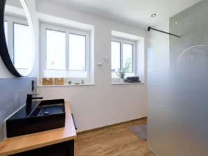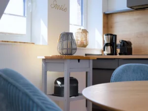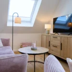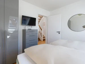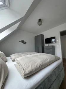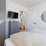 Sehr moderne und gemütliche Ausstattung im modernen Design. Die Wohnung bietet Platz für maximal 2 Personen plus einem Kleinkind. Sie verfügt über ein Schlafzimmer mit 180×200 Boxspringbett. Bei Bedarf stellen wir Ihnen ein Kinderreisebett zur Verfügung.